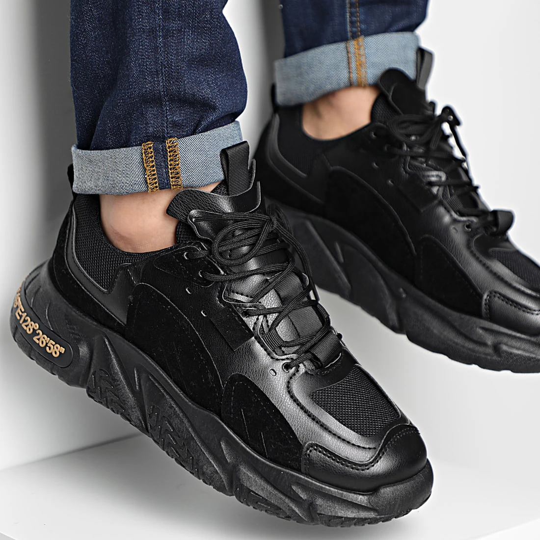 • Baskets de running en mesh et aspect cuir