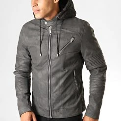 Meilleur prix 👍 Veste Biker Capuche 79719 Gris Anthracite Noir de Classic Series 🌟