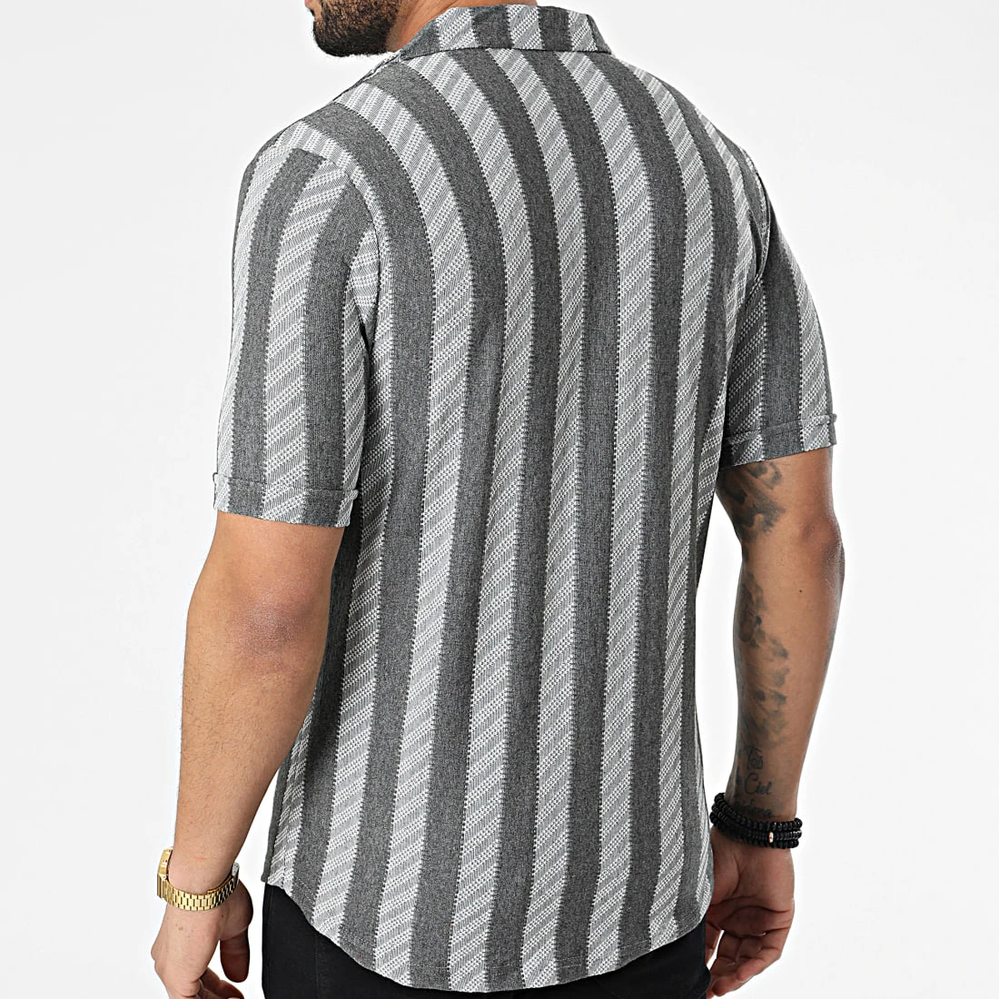 • Chemise à manches courtes estivale avec motif à rayures brodé
