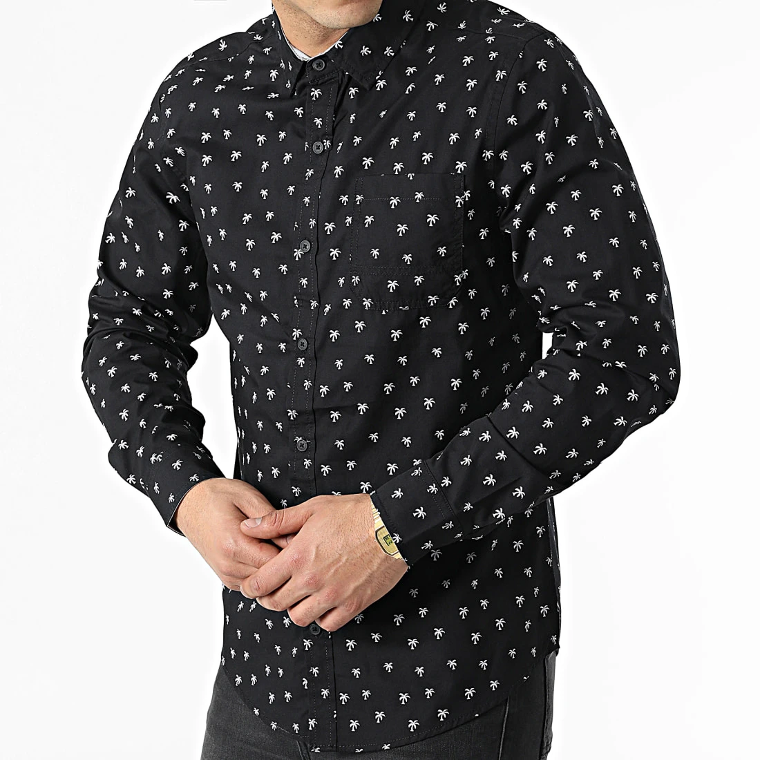 Grosses soldes 😍 Chemise Manches Longues Floral H6313Z Noir de Classic Series 👏