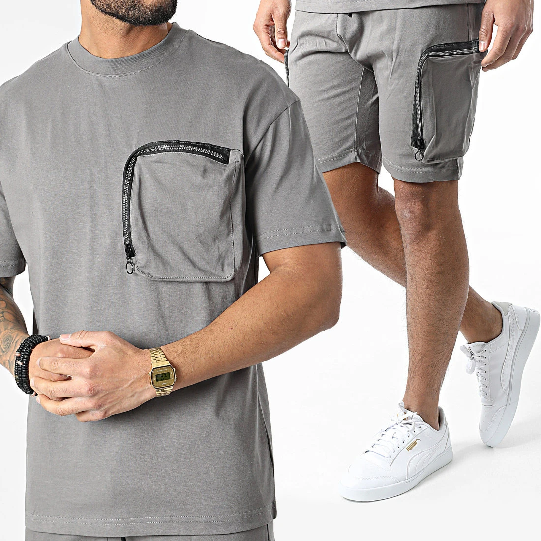 Top 10 ✨ Ensemble Tee 💯 Shirt A Poche Poitrine Et Short Jogging G22-632 Gris de Classic Series 🥰
