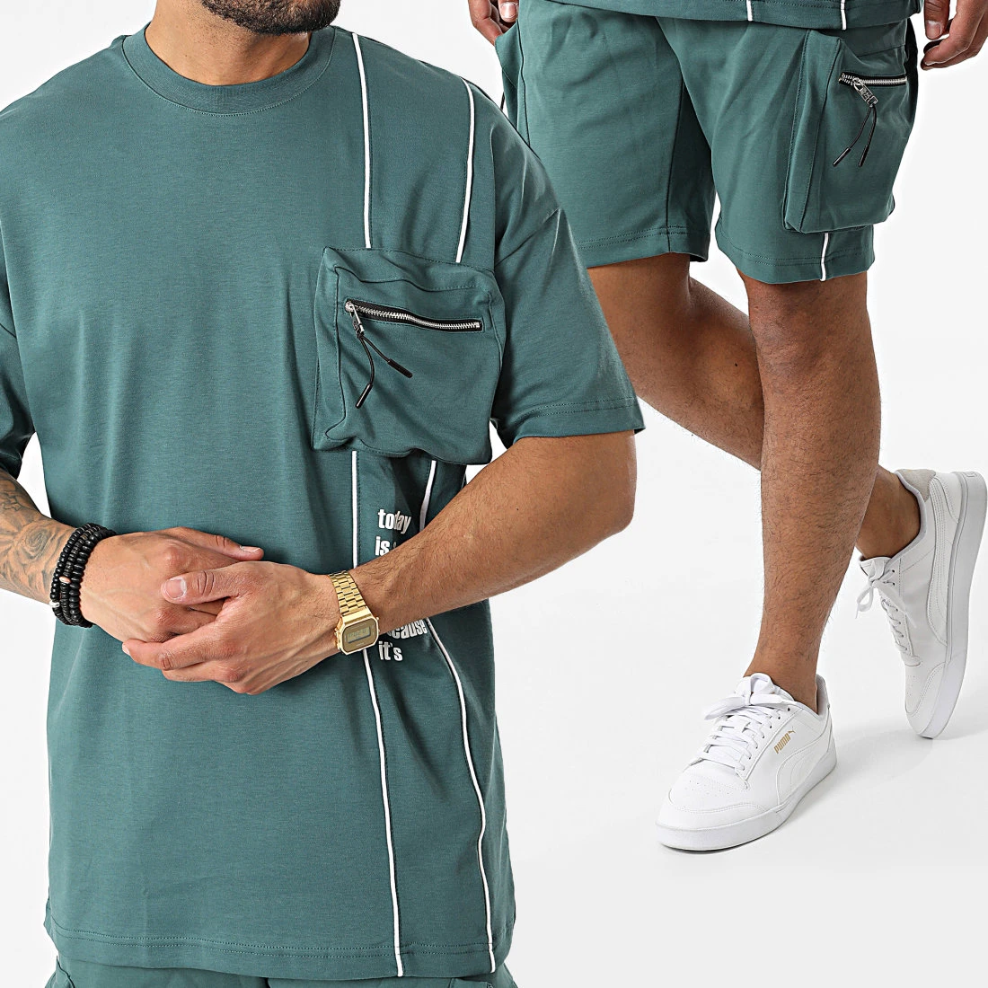 Meilleur prix ⌛ Ensemble Tee Shirt Oversize Short Jogging Y258UST Vert de Classic Series 🔥