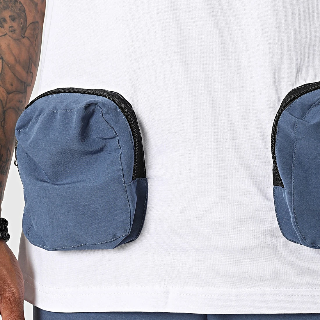 Nouveau ✨ Ensemble Tee 🥰 Shirt Poche Et Pantalon Jogging F22-910T Blanc Bleu de Classic Series ✔️