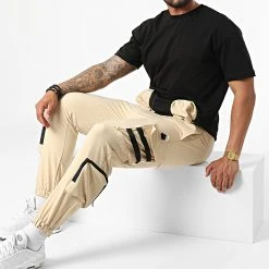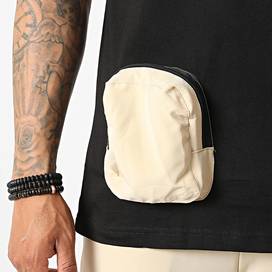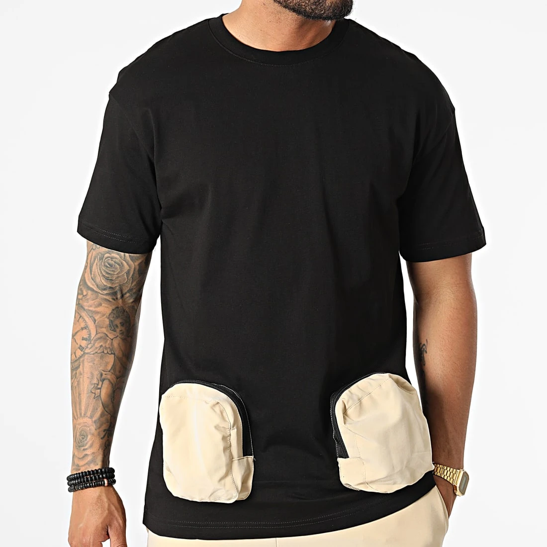 Nouveau 🔥 Ensemble Tee 🎁 Shirt Poche Et Pantalon Jogging F22-910T Noir Beige de Classic Series ✨