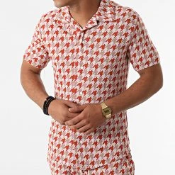 Bon marché ⌛ Ensemble Chemise Manches Courtes Short G21-155T Orange Blanc de Classic Series 👏