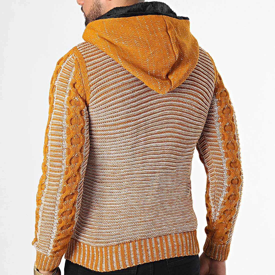 • Gilet capuche confortable essentiel tendance avec motif en maille tressée à l’avant