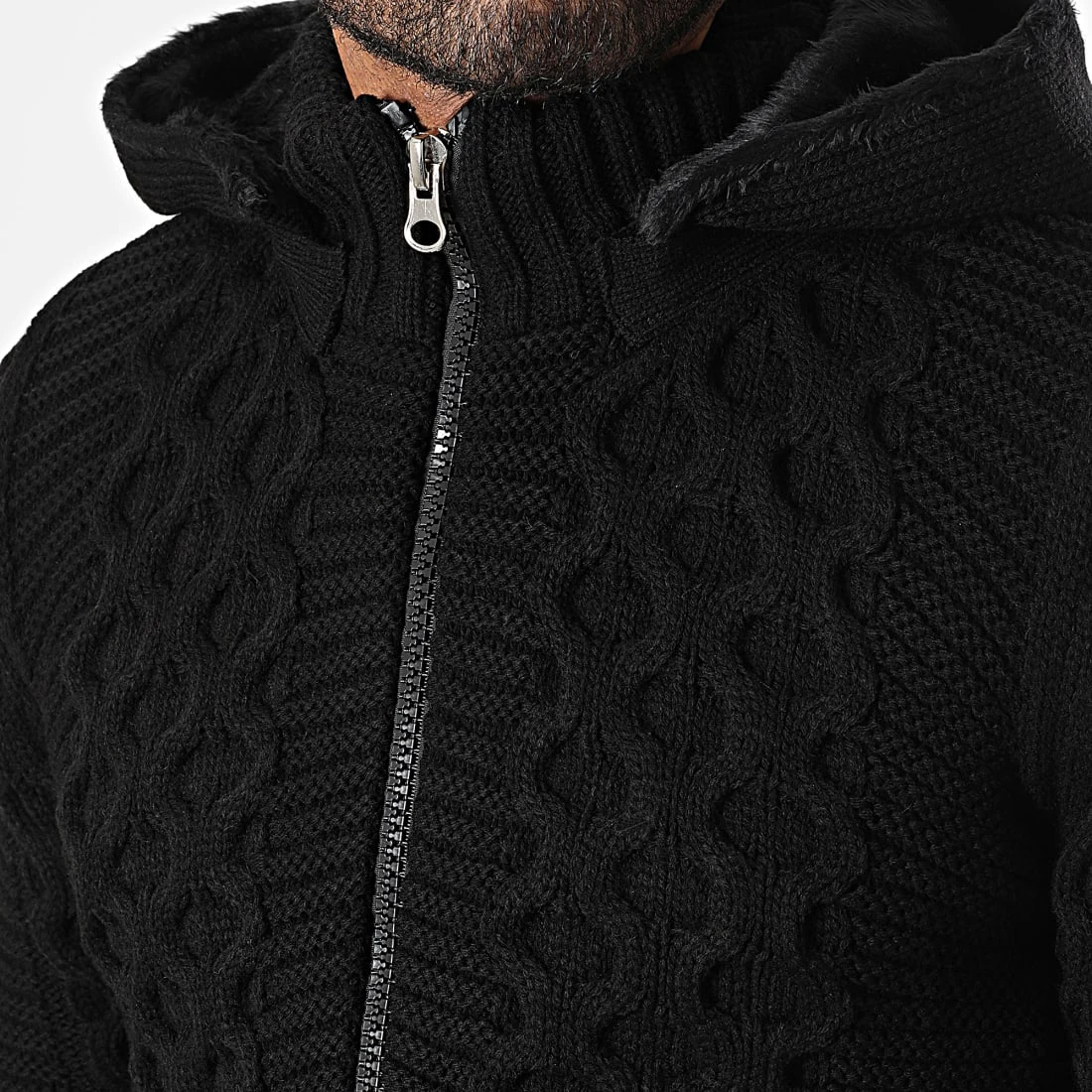 • Gilet capuche confortable essentiel tendance avec motif en maille tressée à l’avant