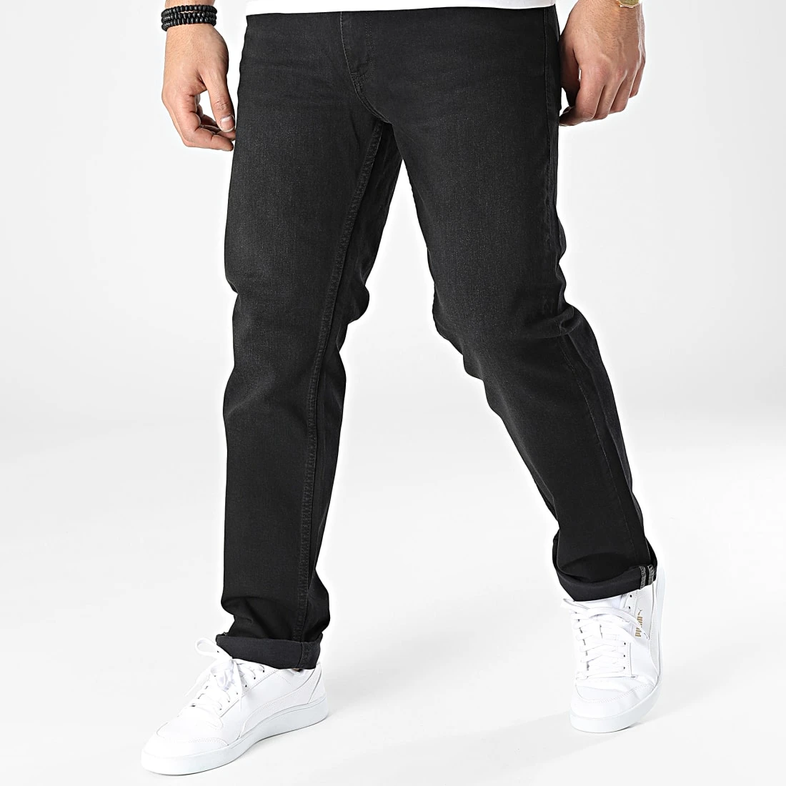 • Jean droit décontracté finition légèrement délavée