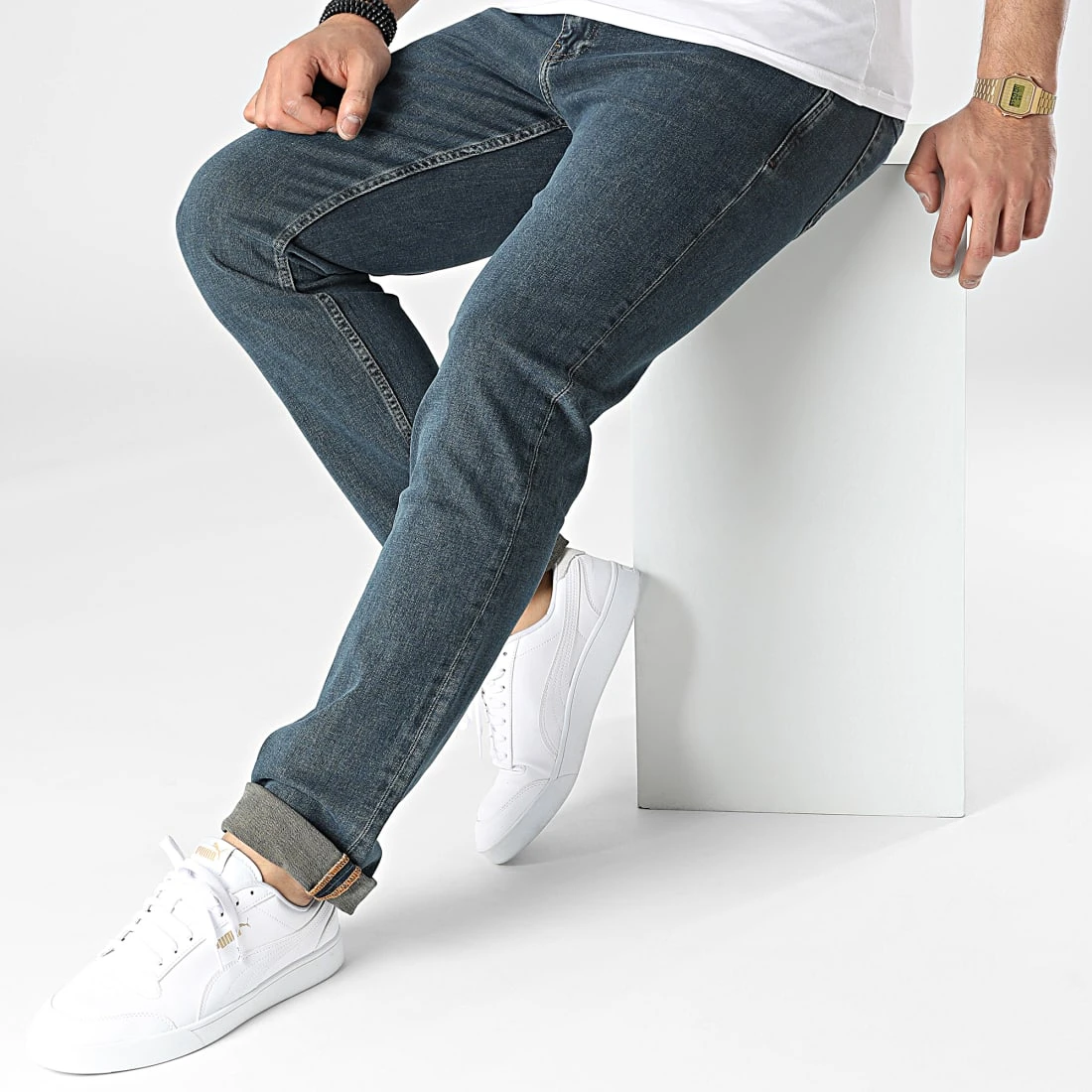 • Jean droit décontracté finition légèrement délavée
