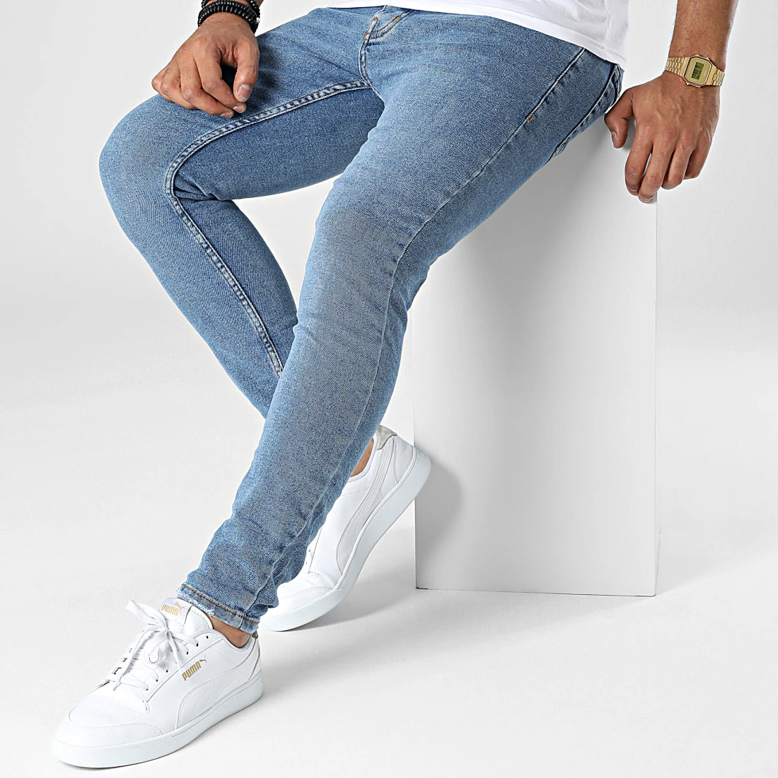 • Jean skinny tendance finition légèrement usée et délavée