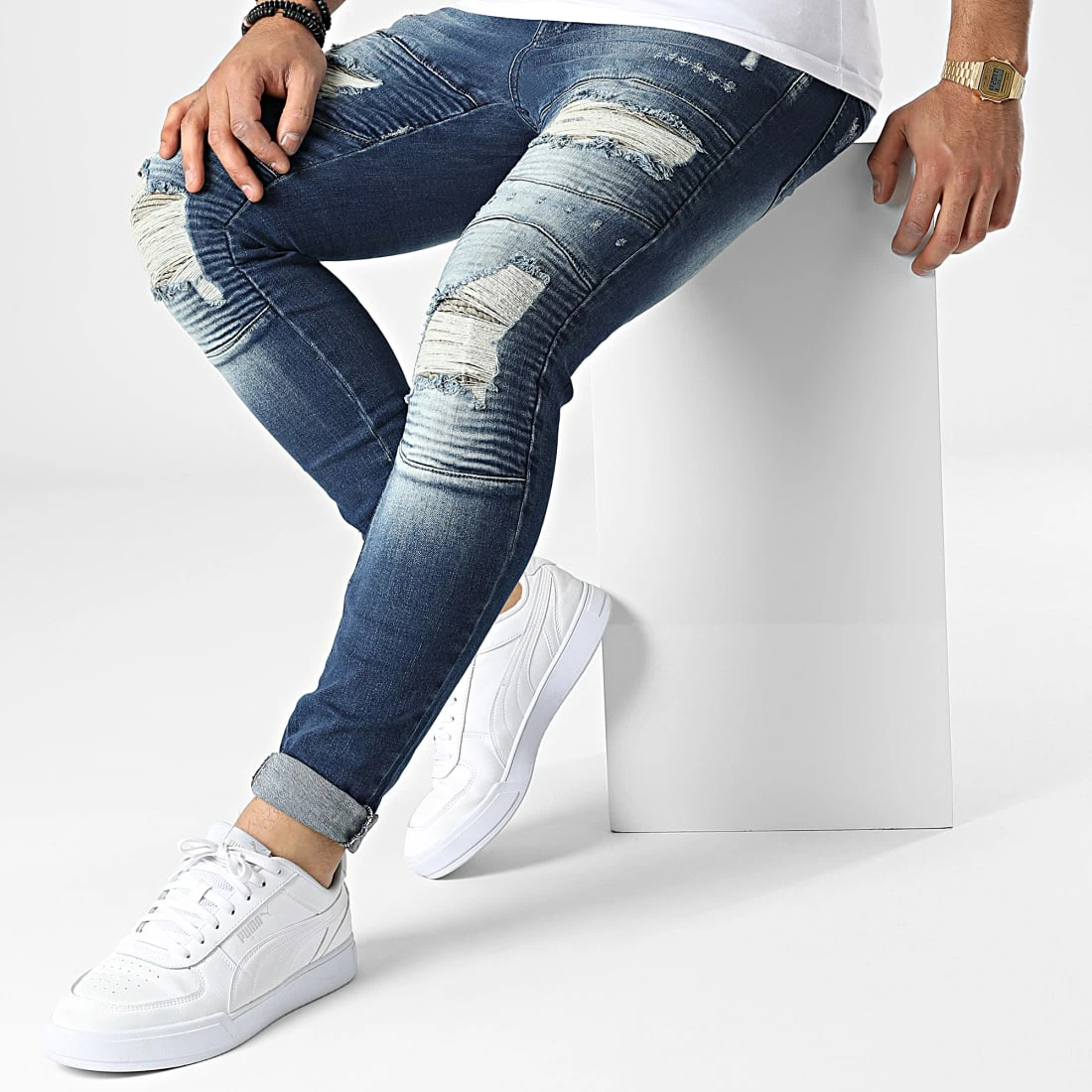 âąÂ Jean skinny tendance finition usĂ©e et dĂ©lavĂ©e avec rapiéçages