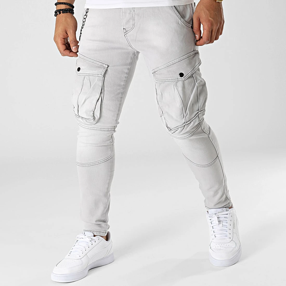 • Jean skinny tendance avec chaîne métallique amovible