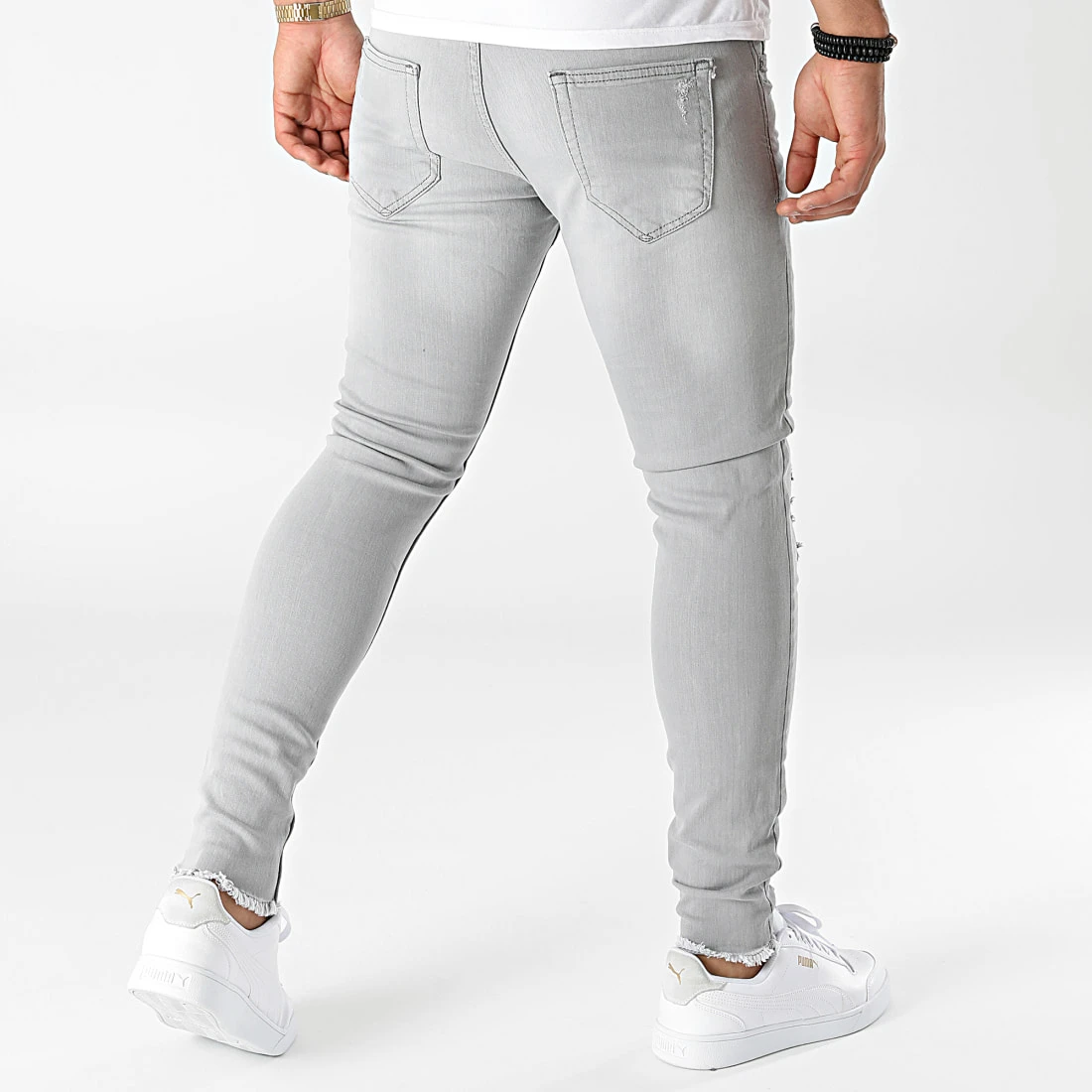 • Jean skinny finition usée avec rapiéçages et chevilles effilées