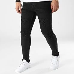 • Jean skinny finition délavée et usée avec rapiéçages