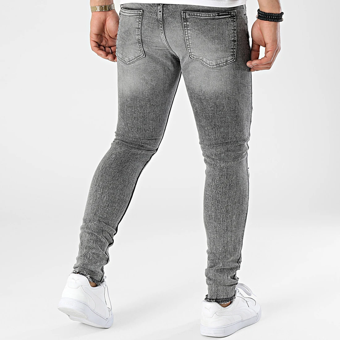 • Jean skinny finition délavée et usée avec rapiéçages