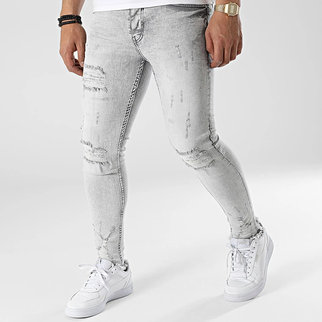 • Jean skinny finition délavée et usée avec rapiéçages