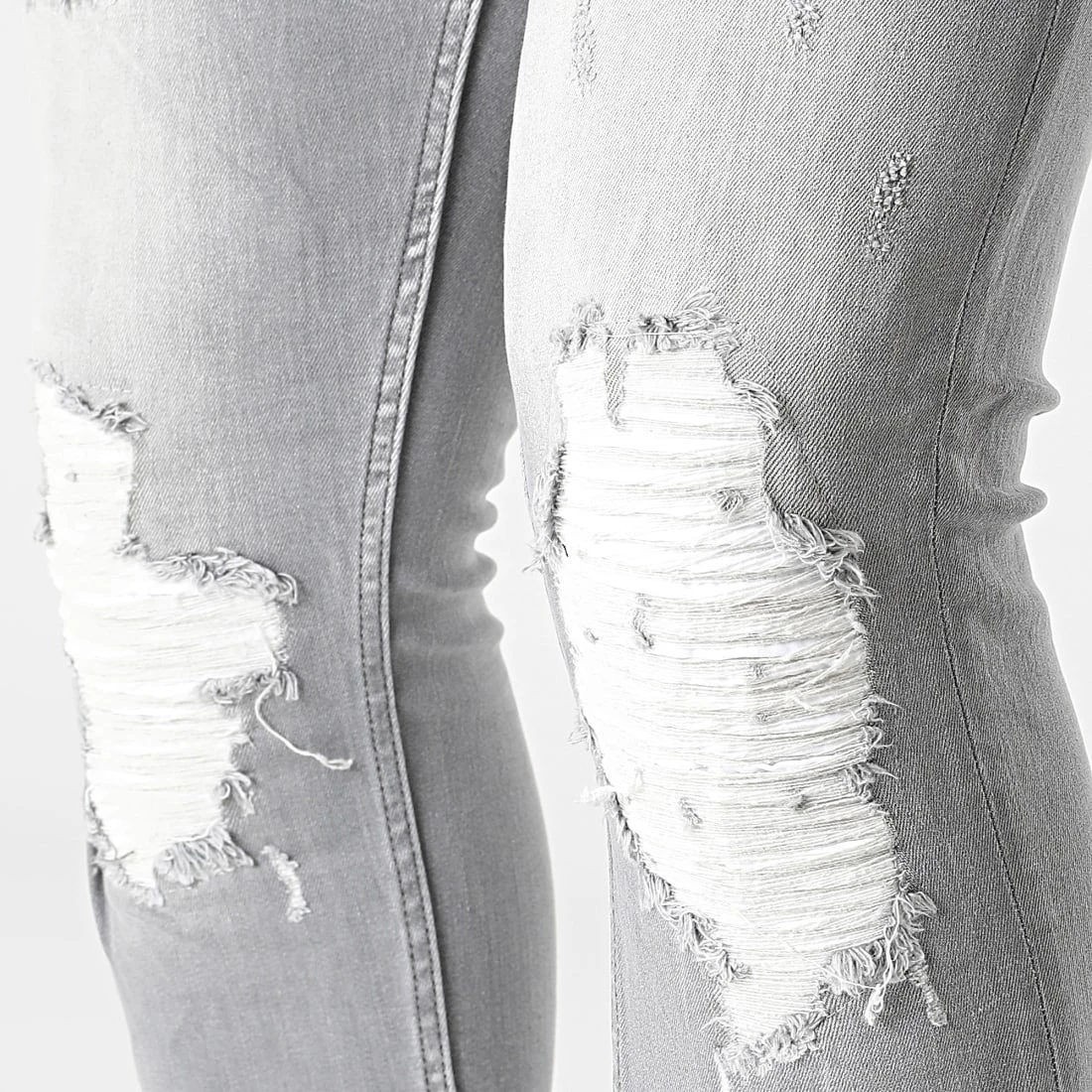 • Jean skinny tendance finition usée et délavée avec rapiéçages