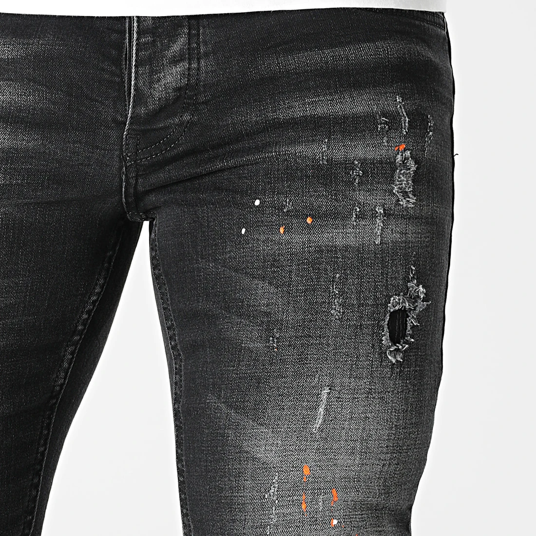 • Finition usée, tachée, délavée et avec rapiéçages