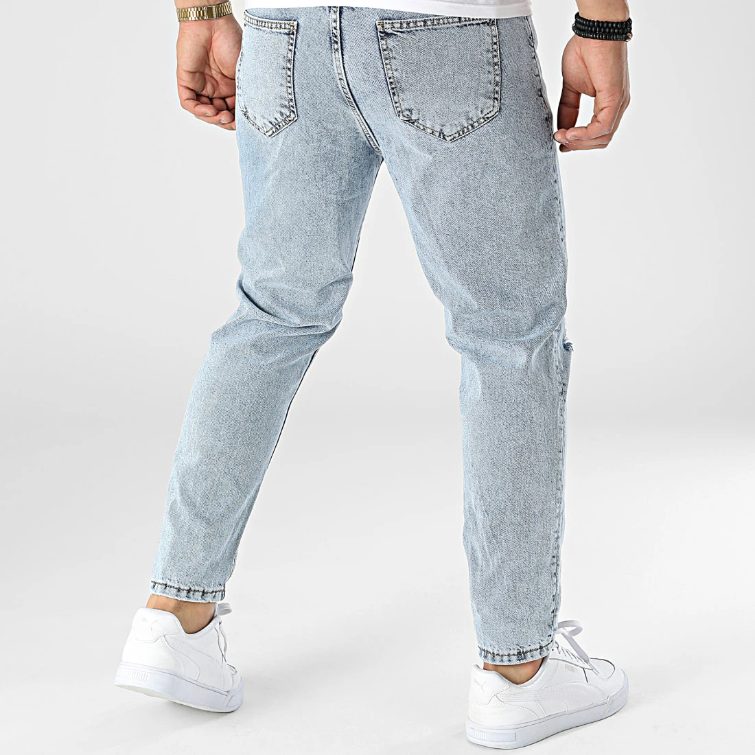 • Jean slim finition délavée et usée avec trous apparents