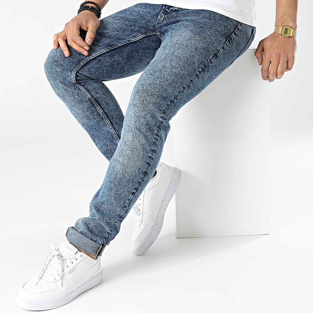 • Jean slim tendance finition délavée