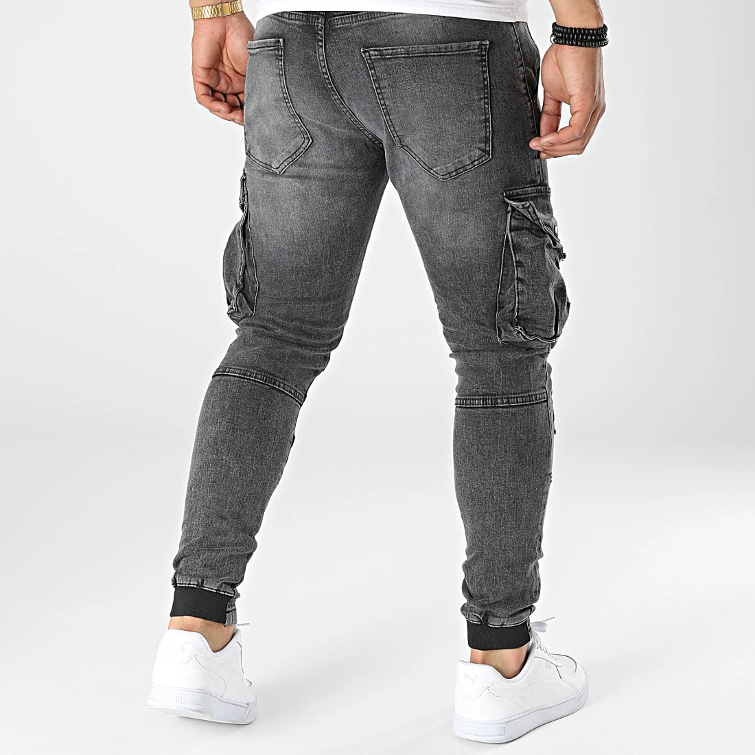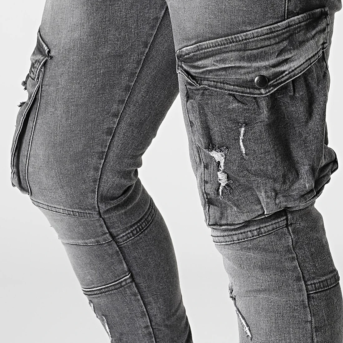 • Pantalon cargo en jean avec poches cargo finition usée et délavée