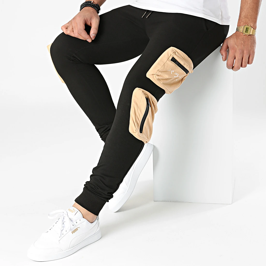 • Pantalon d’entraînement uni avec quatre poches zippées contrastantes sur les jambes
