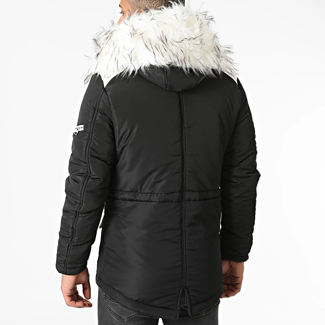 • Capuche zippée amovible avec fourrure synthétique amovible
