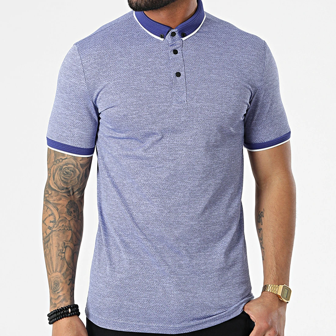 Grosses soldes 👏 Polo A Manches Courtes 1713 Bleu Chiné de Classic Series ⭐