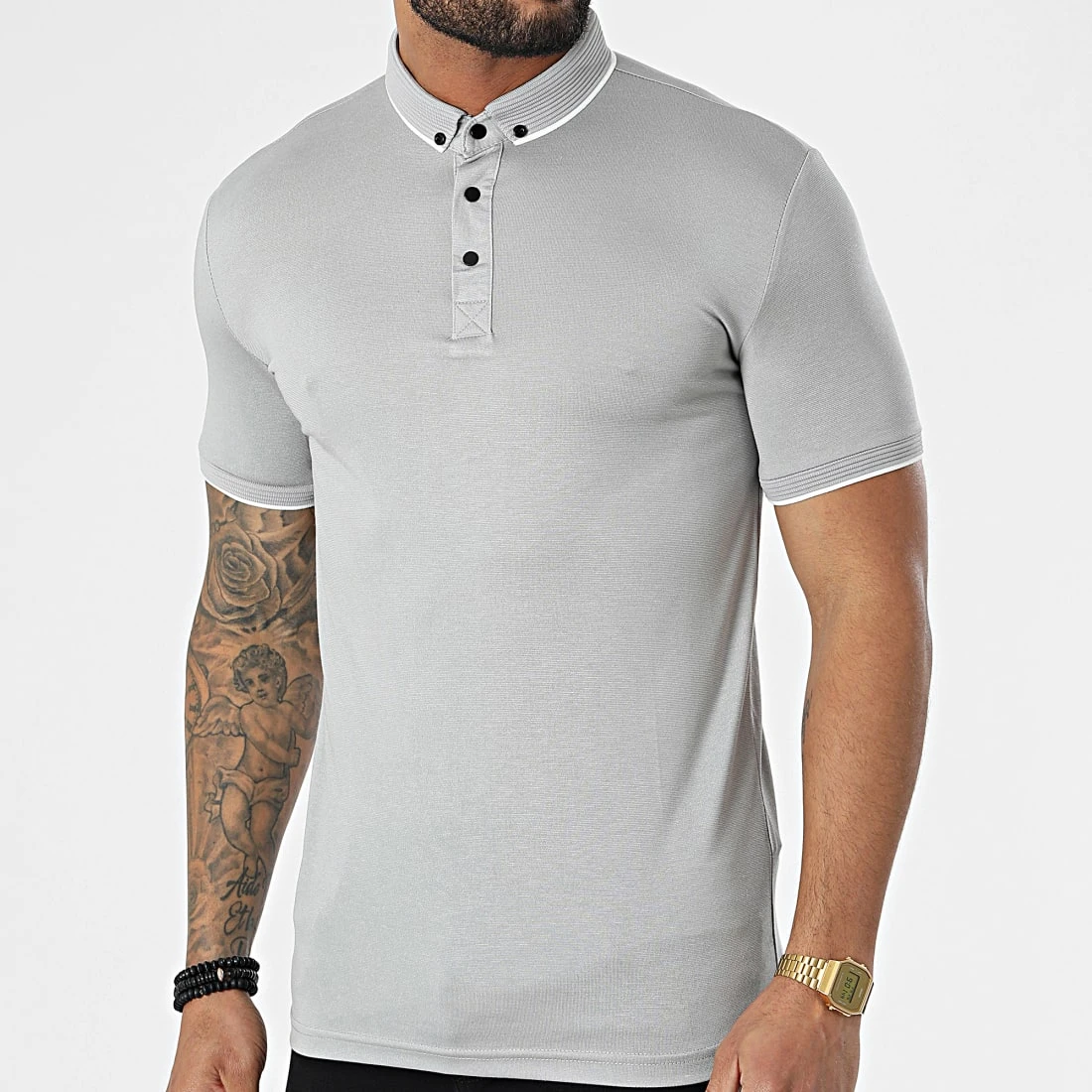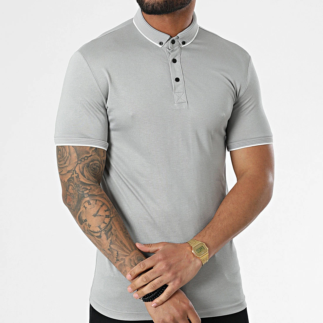 Sortie 👍 Polo A Manches Courtes 1723 Gris de Classic Series ⭐