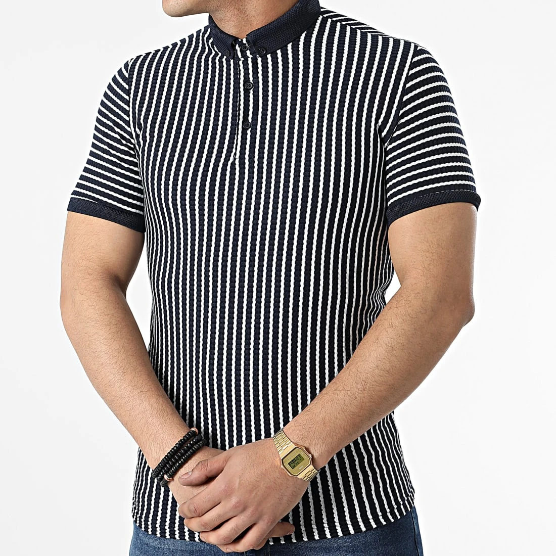 Promo 🛒 Polo A Manches Courtes 1750 Bleu Marine Blanc de Classic Series 🛒