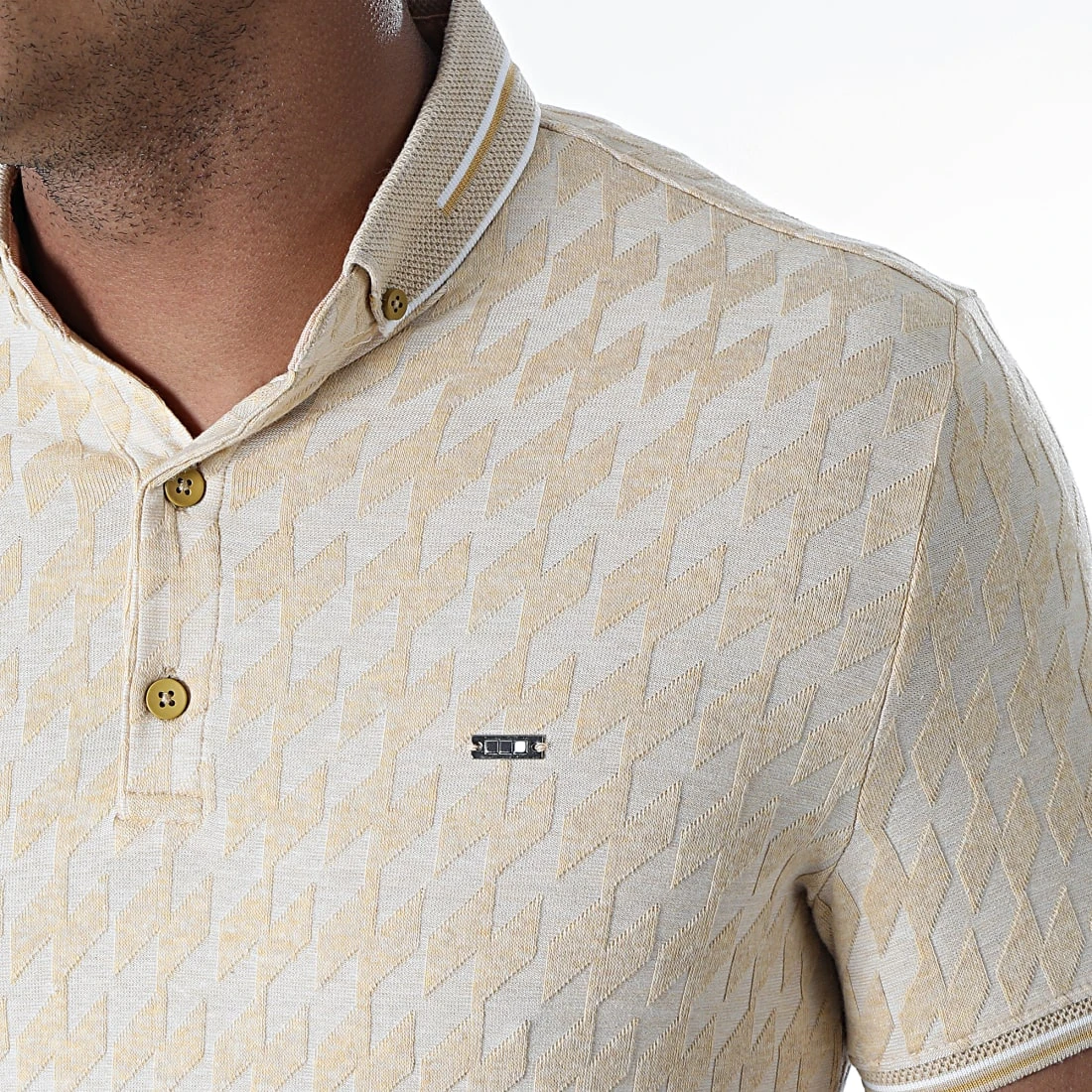 • Polo à manches courtes avec détail métallique sur la poitrine