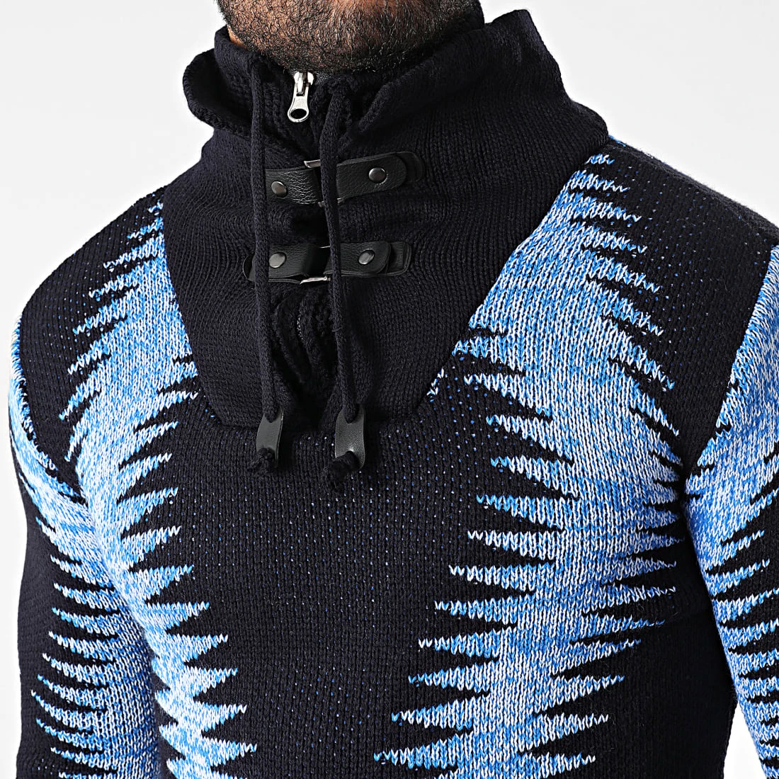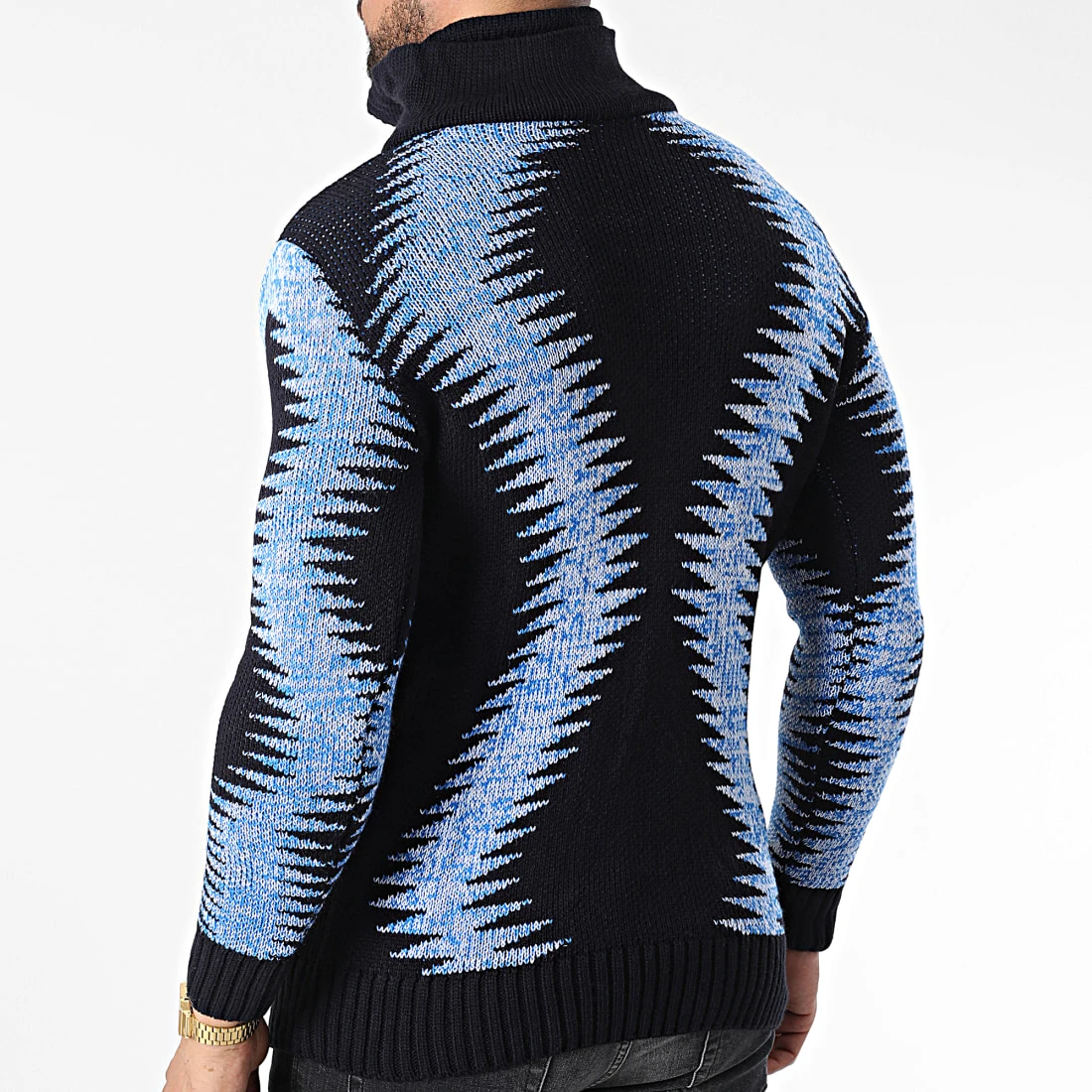 Meilleure affaire 🌟 Pull Col Montant 5018 Bleu Marine Bleu Clair Chiné de Classic Series ✔️
