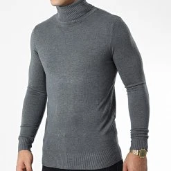 Promo ⌛ Pull Col Roulé J663 Gris Chiné de Classic Series 🌟