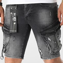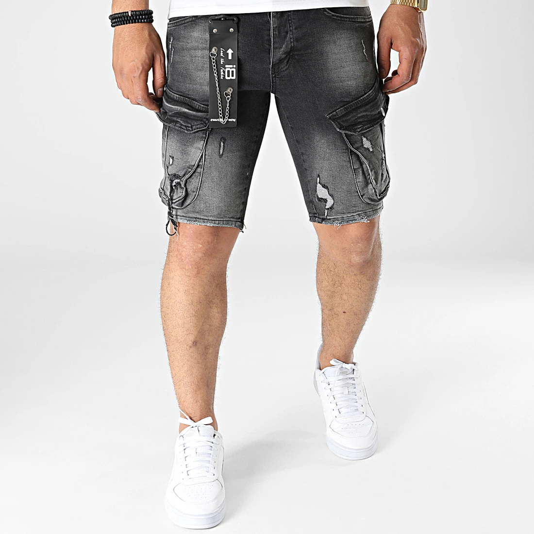 • Short en jean tendance finition usée et délavée avec poches cargo