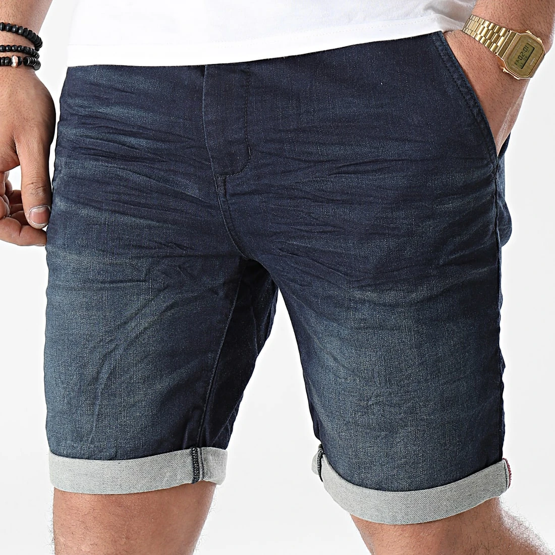 • Short jean délavé en coton stretch