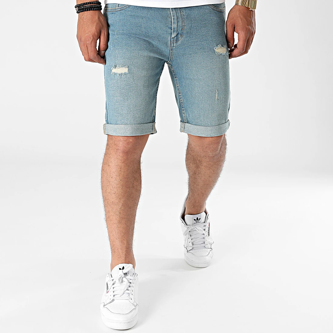 • Short jean finition délavée et usée avec trous apparents et revers cousus sur les cuisses