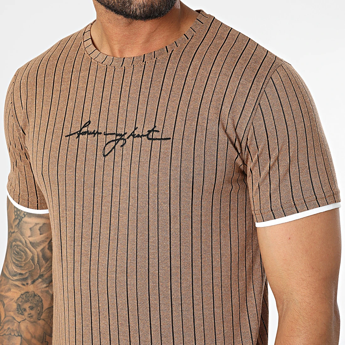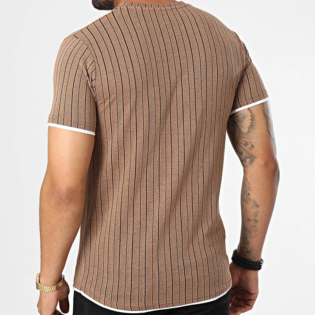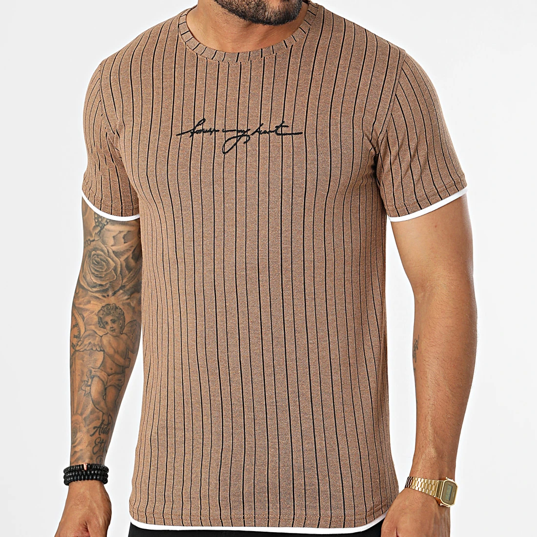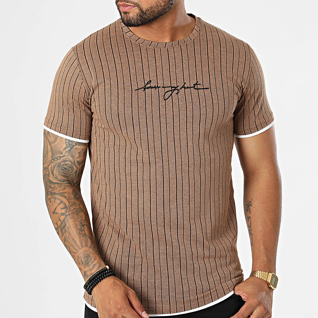 De gros ⌛ Tee 🎁 Shirt A Rayures LM278 Camel de Classic Series ⭐