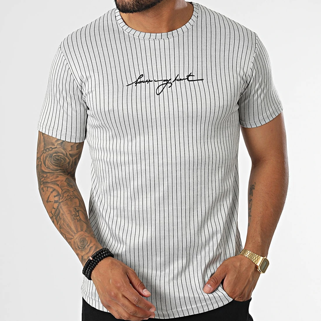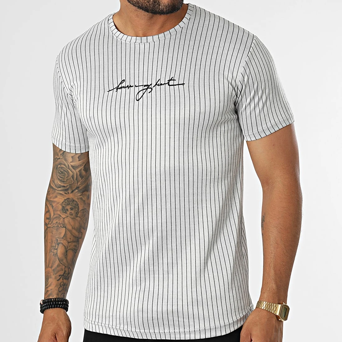 • Tee shirt tendance avec motif à rayures brodé