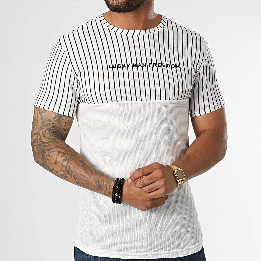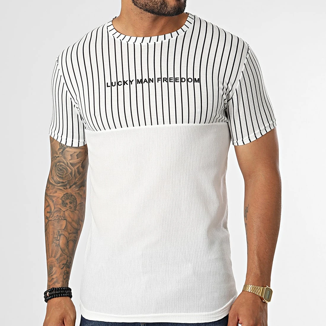 Budget 🎉 Tee 🔥 Shirt A Rayures LM479 Blanc de Classic Series ❤️