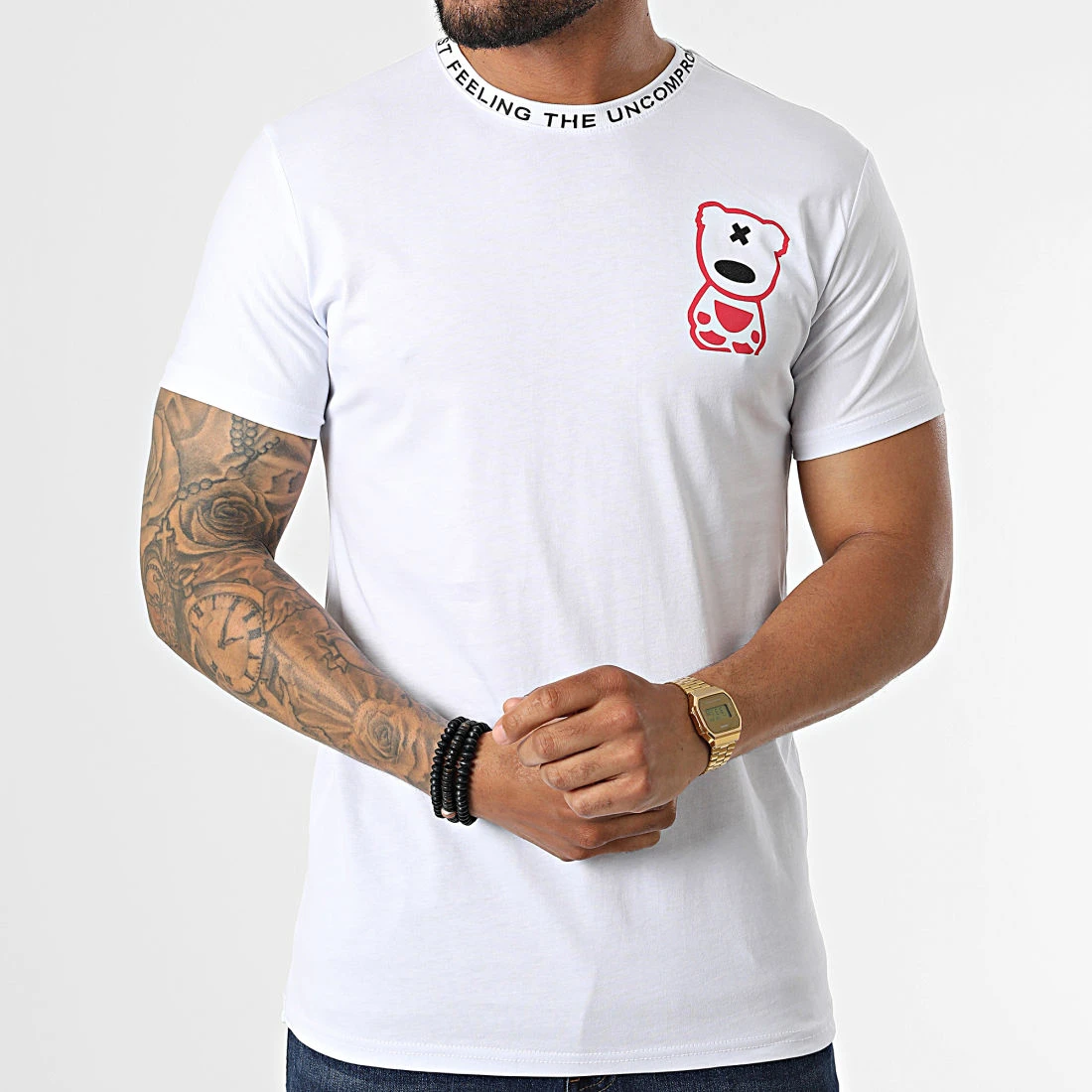 • Tee shirt tendance imprimé visuel à l’avant, au dos et sur le col