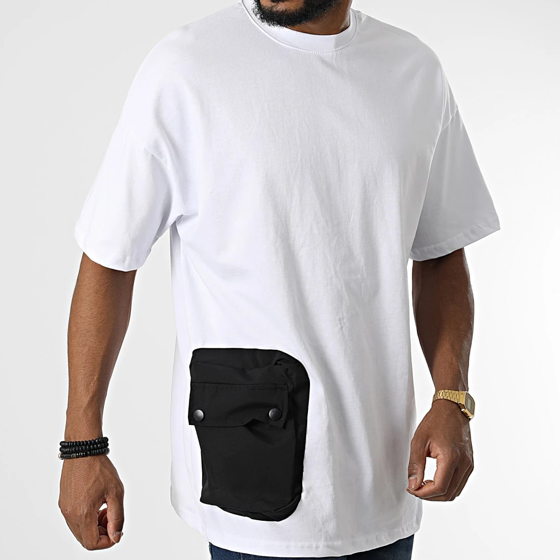 Coupon 🔥 Tee Shirt Oversize Large A Poche 22-Y111 Blanc de Classic Series ❤️