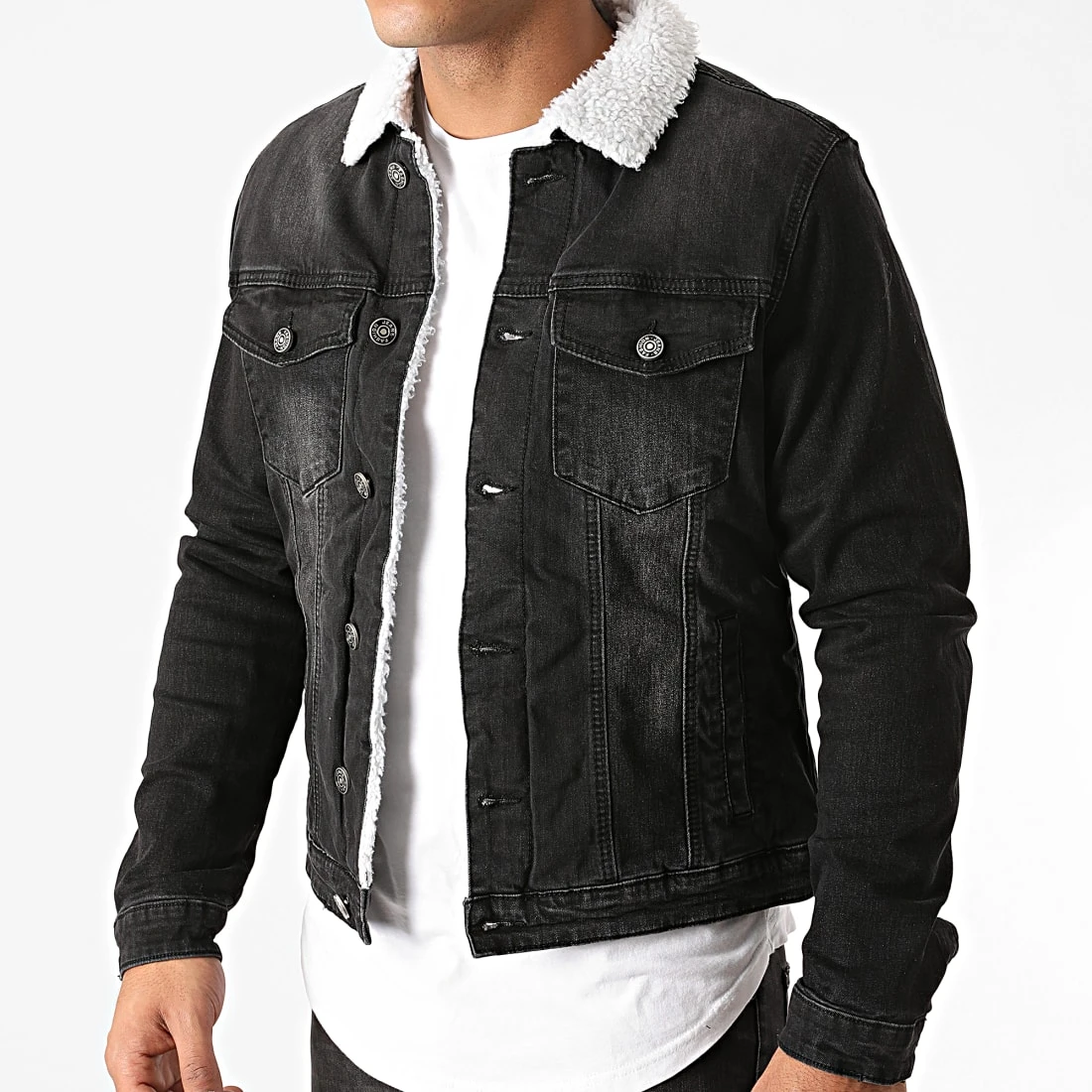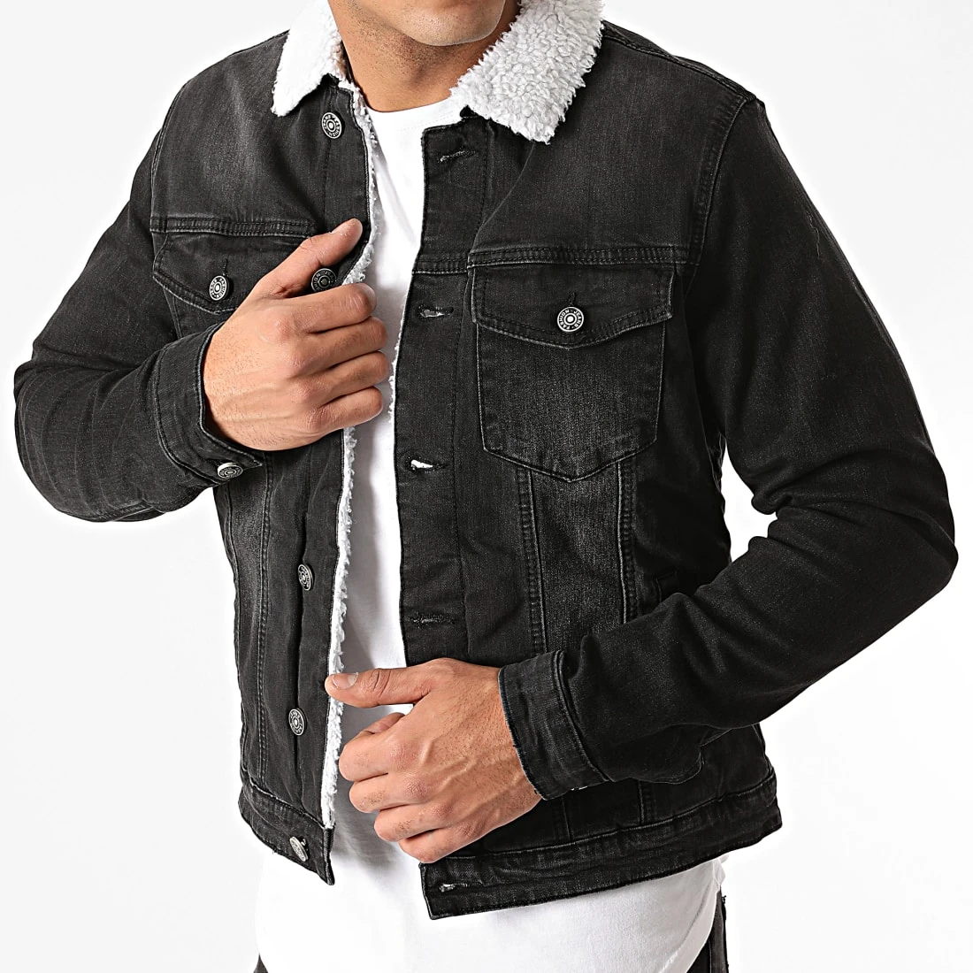 • Veste en jean délavée avec col et doublure en fourrure synthétique
