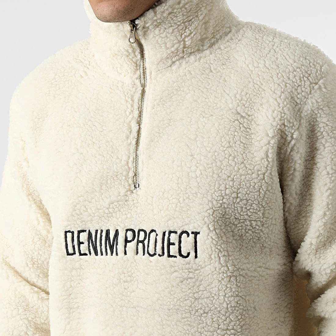 • Veste à col zippée en fourrure synthétique avec visuel Denim Project brodé