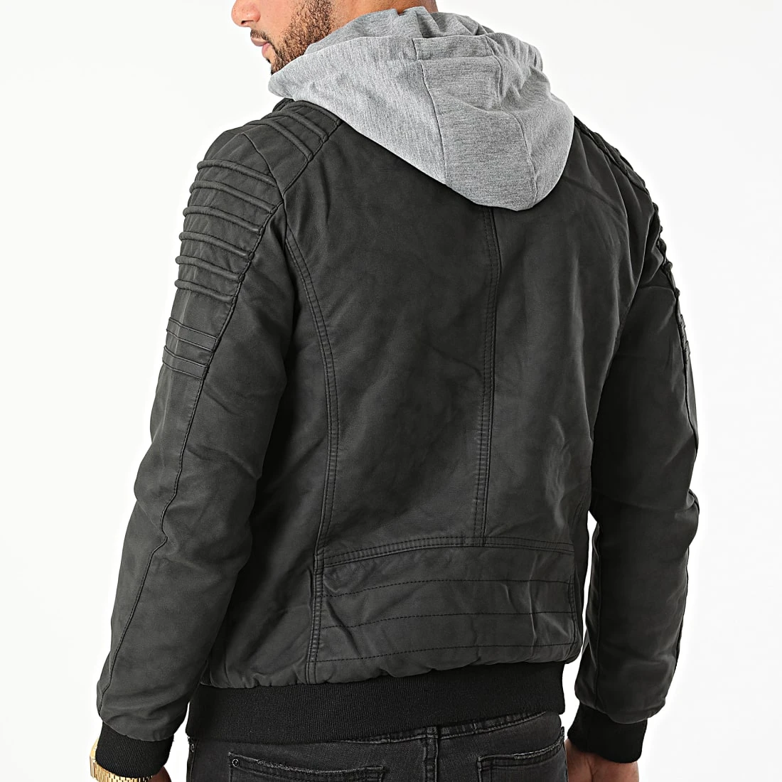 Promo 👏 Veste Zippée Capuche 9682-A Noir Gris Chiné de Classic Series 👍